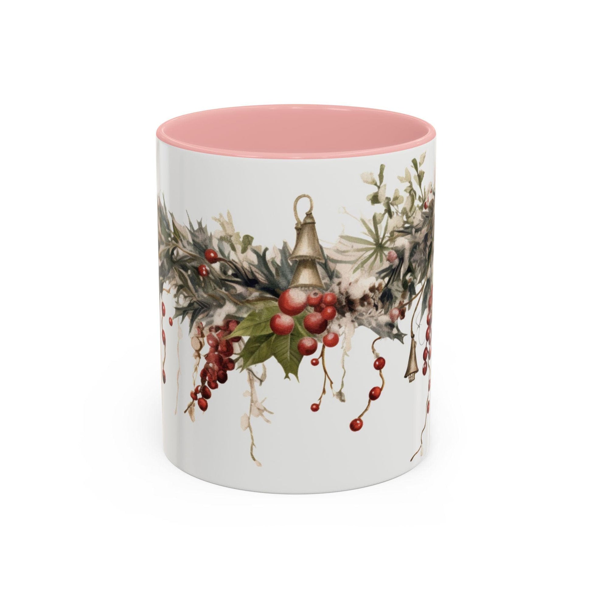 Winter Holiday Snowy Garland Coffee Mug, Festive Ceramic Tea Cup, Classy Drinkware, Christmas Wreath Mug, Holiday Season Gift, Winter Decor,